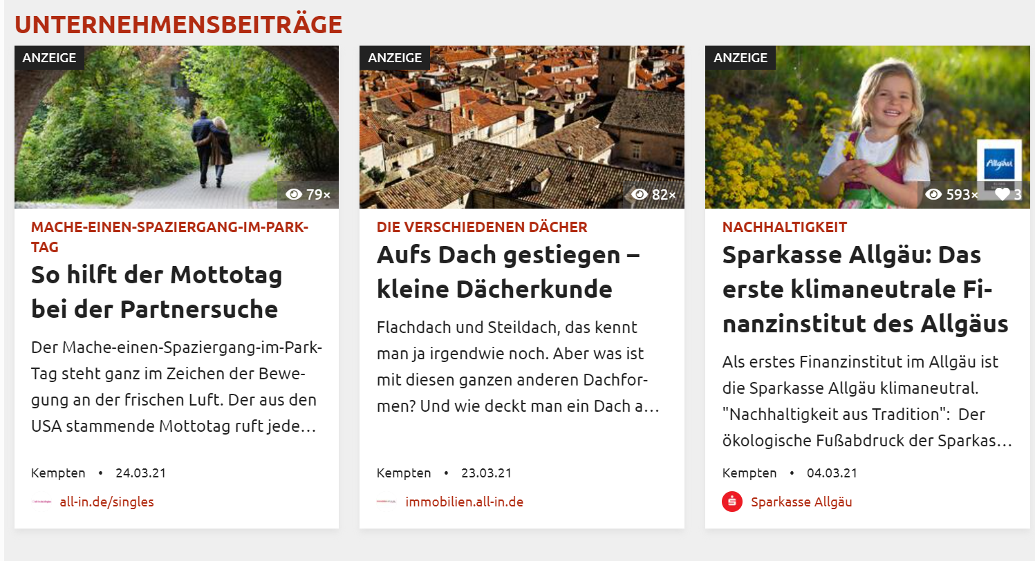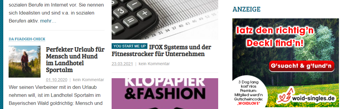 Die Verlinkung in diesem Bereich ist bei einigen unserer Partner sehr erfolgreich. Von dieser Seite sind hohe Conversions direkt in die Registrierung zu verzeichnen. Bei dem Beispiel sehen Sie eine Kombination aus Widgets und Einbindung im Anzeigenbereich.
